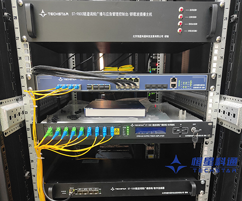 張石高速黑石嶺隧道是地處太行山深處,位于張家口蔚縣與保定市淶源縣的分水嶺,在蔚縣南設置調(diào)頻廣播接收天線,通過光纖傳輸至黑石嶺隧道管理所,在黑石嶺隧道設置數(shù)字選頻器、隧道廣播光傳輸主機、選頻插播控制器、“群載波”全頻強插主機等設備。在隧道內(nèi)設置調(diào)頻直放站遠端機與隧道專用發(fā)射天線。